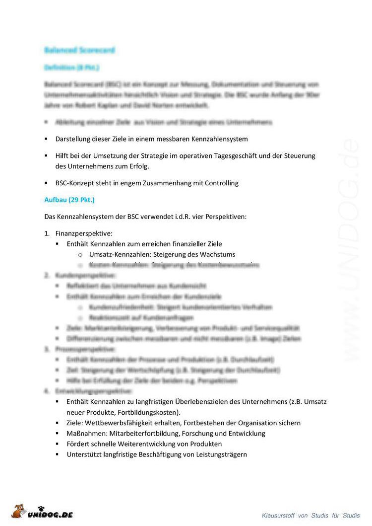 Angefertigtes Abstract zum Thema "Balanced Scorecard". |