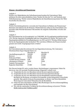 Hier gibt es die aktuelle probeklausur für Invesition und Finanzierung. Die Fragen kamen genauso nur mit anderen zahlen in der Klausur dran. Viel Erfolg beim Lernen! |