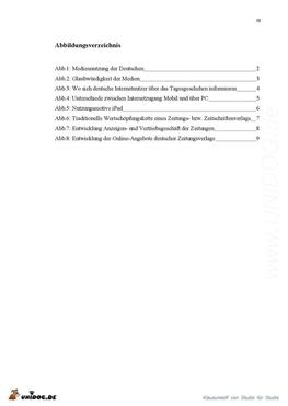 2 Die Rolle des Internets in der Medienlandschaft 2.1 Mediennutzung zur Informationsaufnahme 2.2 Wandel von stationärer zu mobiler Internetnutzung 3 Auswirkungen des Internets auf die Verlage in Deutschland 3.1 Traditionelle Wertschöpfungskette und Erlösstruktur 3.2 Digitalisierung im Verlagswesen 3.2.1 Verlage gehen online 3.2.2 Anpassungen im Geschäftsmodell 3.2.3 Neue Kosten- und Erlösstrukturen 3.2.4 Veränderte Ansprache der Zielgruppen 3.2.5 Neue Vertriebswege |