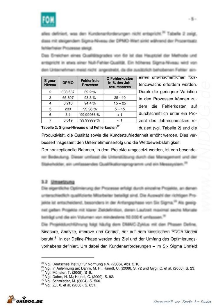 Six Sigma als Instrument der Prozessoptimierung zur Performance Verbesserung - kritische Betrachtung |