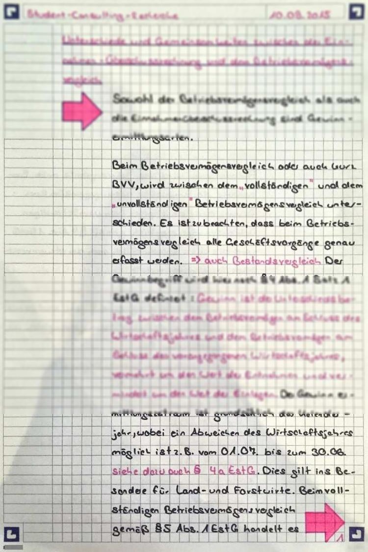 Student - Consulting - Recherche zu dem Thema "Unterschiede und Gemeinsamkeiten zwischen der Einnahmen - Überschussrechnung & dem Betriebsvermögensvergleich"