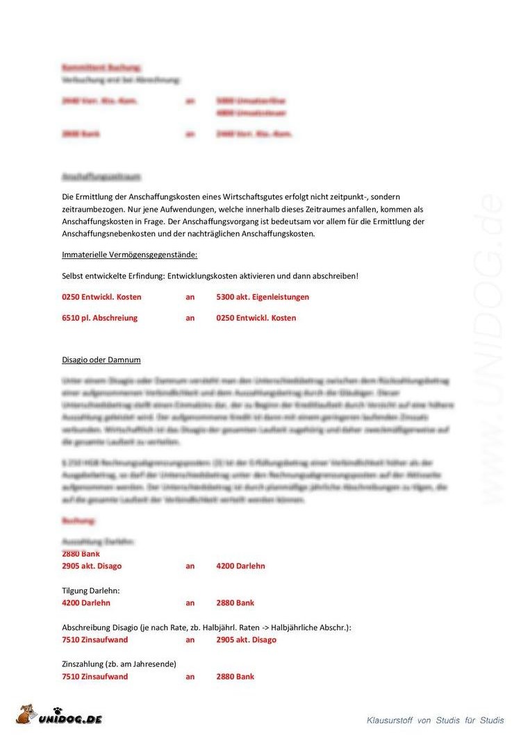 Zusammenfassung des Teils Bilanzierung (größter Anteil in der Klausur) mit den relevanten Buchungssätzen |
