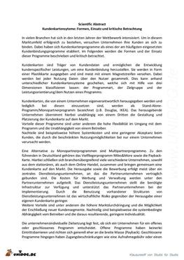 scientific Abstract Kundenkartensyteme: Formen, Einsatz und kritische Betrachtung