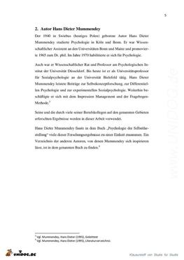 Einführung in das Thema, etwas über den Autor, Grundbegriffe des Impression-Managements, Impression-Managemen-Theorie, Strategien und Taktiken des Impression-Managements, Selbstdarstellung im Alltag, Fragebogen als Instrument zur Messung von Selbstdarstellung, Schlussbetrachung. Laut Aufgabenstellung sollten nur zwei Quellen eines Autors genutzt werden.