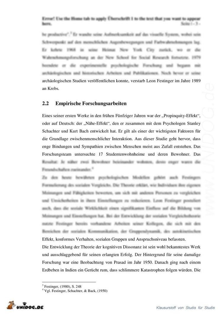 Der Sozialpsychologe Leon Festinger (1919-1989) revolutionierte in den 1950er Jahren mit seiner Theorie der Kognitiven Dissonanz die Psychologie. Erstmals befasste sich eine Theorie der wissenschaftlichen Psychologie mit der Dynamik der menschlichen Psyche. Eine Seminararbeit über sein größtes geschaffenes Werk. |