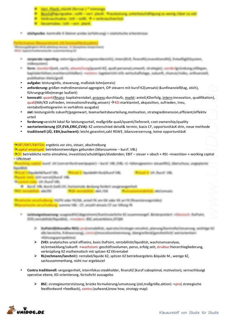 Anbei eine kurze Zusammenfassung für die Controlling Klausur von Herrn Guid Pfeifer im Sommersemster 2017. |