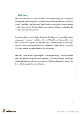 Diese Hausarbeit habe ich im Januar 2016 im Modul Datenbankmanagement abgegeben. Schwerpunkt der Arbeit ist Datenbank Clustering. Erzielte Note 1,3. Inhaltsverzeichnis Abbildungsverzeichnis Tabellenverzeicnis 1. Einleitung 2. Grundlagen 2.1 Definitionen 2.1.1 Datenbank 2.1.2 Clustering 2.1.3 Clusteranalyse 2.2 Grundbegriffe 2.2.1 Shared Storage 2.2.2 Shared Nothing 2.2.3 Sharding 2.3 Abgrenzung zu Replikation 3. Clustering Algorithmen 3.1 K-Means Algorithmus 3.2 K-Modes Algorithmus 3.3 Demographic Clustering 4. Fazit Literaturverzeichnis |