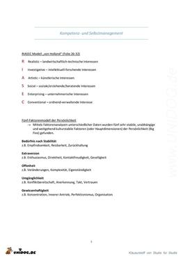 Zusammenfassung des Skriptes bzw. der klausurrelevanten Themen im Modul Kompetenz- & Selbstmanagement bei Frau Prof. Bruns. |