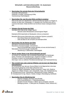Klausurvorbereitung Wirtschafts- und Unternehmensethik |