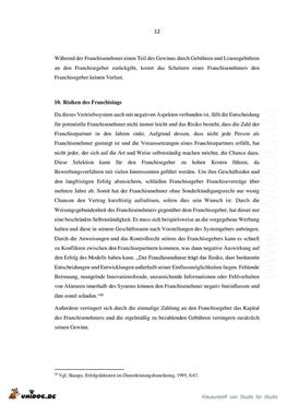 Inhaltsverzeichnis 1. Abbildungsverzeichnis...................................................................................................I 1. Vorwort.......................................................................................................................... 1 2. Einleitung....................................................................................................................... 1 2.1. Der Begriff Franchising................................................................................................ 1 2.2. Ursprung des Begriffes Franchisings.......................................................................... 3 2.3. Ziel der Hausarbeit....................................................................................................... 4 3. Business Franchising .................................................................................................... 4 4. Akteure des Business Franchisings ............................................................................. 6 5. Social Franchising......................................................................................................... 7 6. Vergleich der Franchiseformen ................................................................................... 8 7. Gemeinsamkeiten beider Franchisesysteme............................................................. 10 8. Chancen des Franchisings.......................................................................................... 10 9. Risiken des Franchisings............................................................................................ 12 10. Fazit.............................................................................................................................. 14 11. Literaturverzeichnis ................................................................................................... 15 12. Internetverzeichnis ..................................................................................................... 15 13. Ehrenwörtliche Erklärung......................................................................................... 16 |