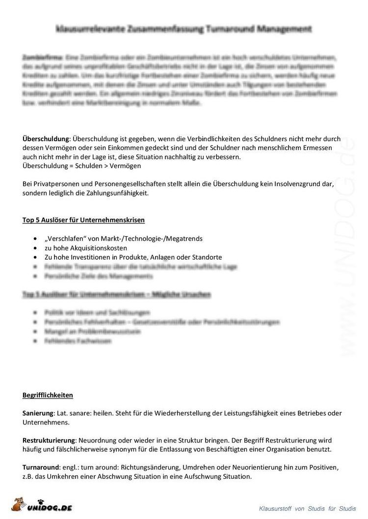 Turnaround Management - Zusammenfassung |