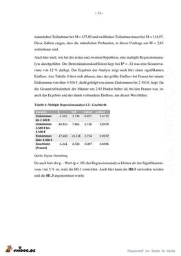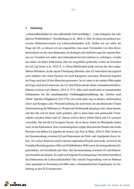 Reich, reicher, am zufriedensten? Haben Menschen mit mehr Einkommen eine höhere Lebenszufriedenheit als Menschen mit weniger Verdienst? Das empirische Projekt untersucht vorrangig den Zusammenhang zwischen Einkommen und Lebenszufriedenheit. Im Weiteren wird erforscht, ob sich die Thematik durch die Variablen; Wohlbefinden, Alter, Geschlecht und Beziehung beeinflussen lässt. Hierzu wurde eine quantitative Befragung durchgeführt, deren Grundlage eine modifizierte Form des Fragebogens zur Erfassung der Lebenszufriedenheit (FLZ) ist. An der Umfrage haben 86 Personen, unterschiedlichen Alters (16 – 65), Geschlechts (Frauen / Männer), Einkommens (1.500 € - >4.500 €) und Arbeitsverträgen (Teilzeit / Vollzeit) teilgenommen. Die erhobenen Daten wurden mit der Statistiksoftware R ausgewertet, welche über eine multiple Regressionsanalyse eine Signifikanz der aufgestellten Hypothesen aufzeigen konnte. Daraus resultiert, dass der Zusammenhang zwischen Lebenszufriedenheit und Einkommen durch die unabhängigen Variablen (Alter, Geschlecht, Wohlbefinden und Beziehung) zu beeinflussen ist.