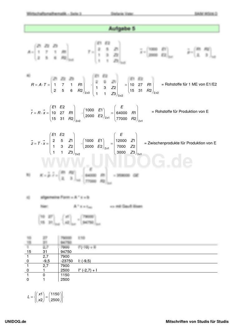 Probeklausur Wirtschaftsmathematik mit Lösung |