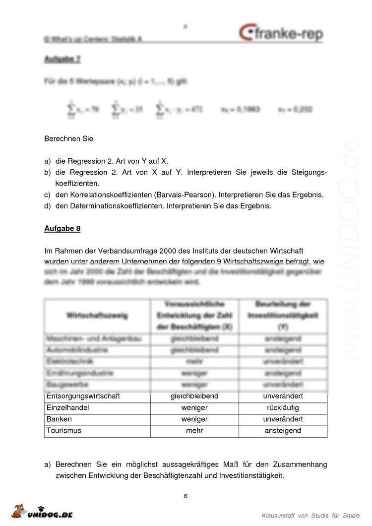 Und noch mal 10 ausführliche repräsentative Klausuraufgaben zur Statistik A.