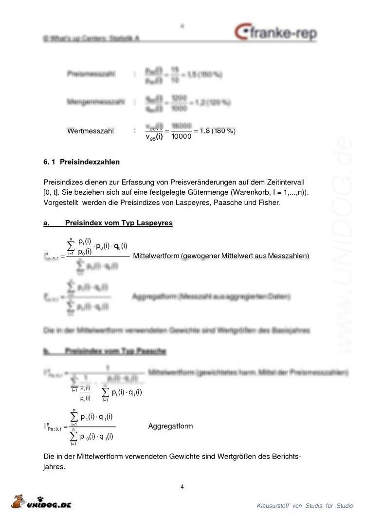 Hier enthalten: 6. Indexzahlen 6.1 Preisindexzahlen 6.2 Mengenindexzahlen 6.3 Wertindexzahl 6.4 Wertindexzahl 6.5 Umbasierung und Verkettung von Indexzahlen