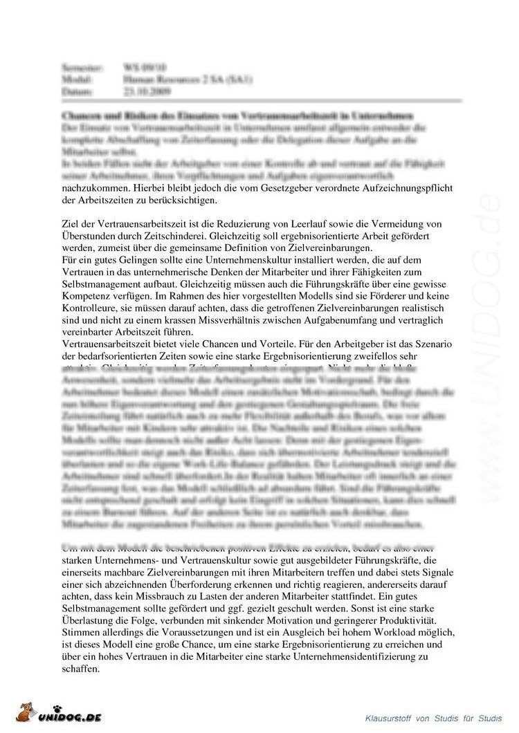 Chancen und Risiken des Einsatzes von Vertrauensarbeitszeit in Unternehmen |
