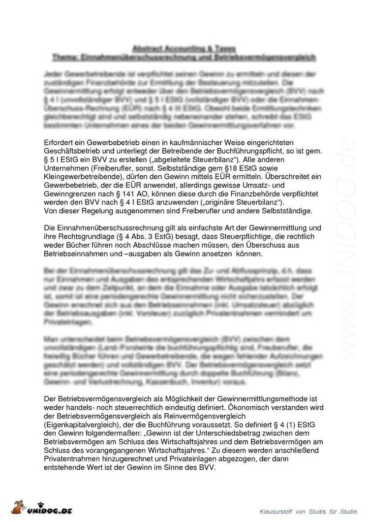 Abstract Einnahmenüberschussrechnung vs. Betriebsvermögenvergleich |