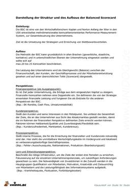 Abstract - Darstellung der Struktur und des Aufbaus der Balanced Scorecard BSC |