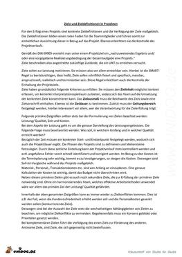 Für den Erfolg eines Projekts sind konkrete Zieldefinitionen und die Verfolgung der Ziele maßgeblich. Die Zieldefinitionen bilden einen roten Faden für die Teammitglieder und führen somit zur einheitlichen Ausrichtung dieser in Bezug auf das Projekt. Ebenso erleichtern sie die Kontrolle des Projektverlaufs |