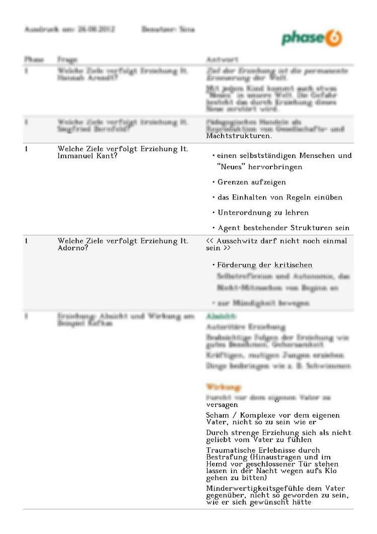 Ich bin Studentin an der Fern-Uni in Hagen und studiere dort Bildungswissenschaften. Da ich persönlich nicht so gut mit den üblichen Zusammenfassungen lernen kann, habe ich mir angewöhnt den Lernstoff in Karteikarten zu verpacken. Diese Fragen und Antworten habe ich aus meiner Karteikartensoftware in ein pdf gebracht und möchte Euch diese hier gern zum Lernen zur Verfügung stellen. Die Blätter einfach in der Mitte knicken und schon kann´s losgehen. Diese Übungsfragen bezieht sich auf Kapitel 2 Der Grundbegriff der Erziehung |