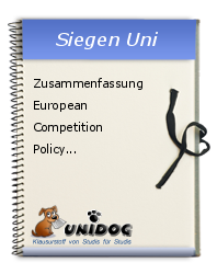 Alle klausurrelevanten Themen zur Vorlesung European Competition Policy bei Herrn Schlösser. Skript zusammengefasst + eigens angefertigte Zusatzinformationen |