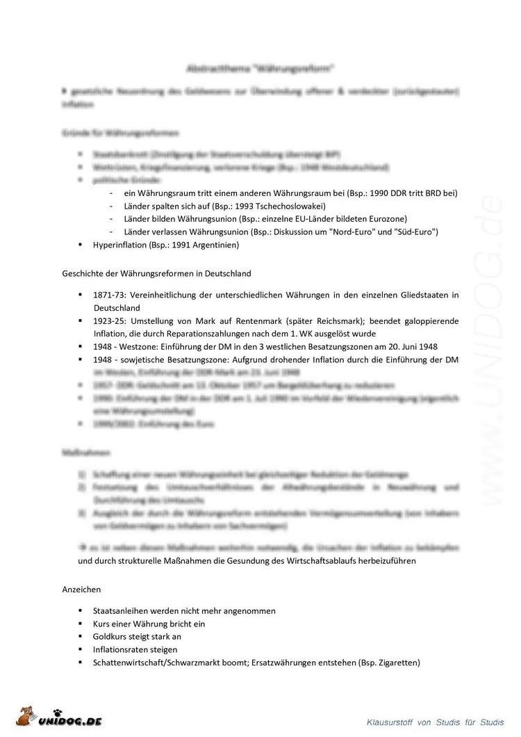 Inhaltliche Zusammenfassung in Stichpunkten für Scientific Abstract, Thema "Währungsreform" |
