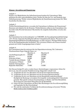 Probeklausur Investition & Finanzierung |