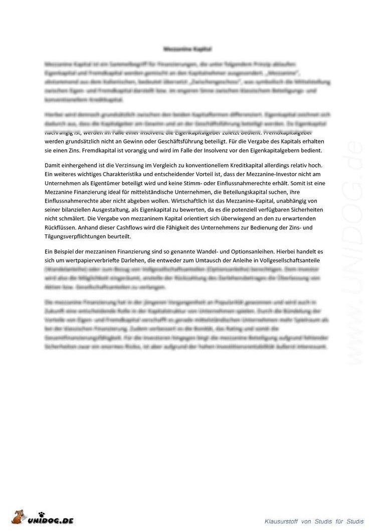Scientific Abstract "Mezzanine Kapital" / Dozent: Westendorf |