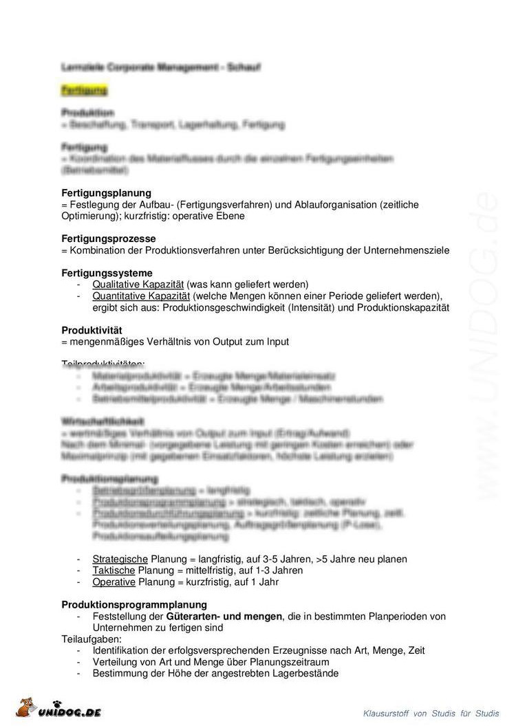 Zusammenfassung des Teils Fertigung bei Herrn Schauf Produktion Fertigung Fertigungsplanung Fertigungsprozesse Fertigungssysteme Produktivität Wirtschaftlichkeit Produktionsplanung Produktionsprogrammplanung 3 Ebenen der Produktionsprogrammplanung: Über- und Unterproduktion Fertigungstypen Werkstattfertigung Fließfertigung Gruppenfertigung Fertigungsverfahren Einzelfertigung Serienfertigung Durchlaufzeit Partielle Durchlaufzeit Massenfertigung Layoutplanung PPS = Product Planning System Klassische sukzessive PPS Push-Prinzip Partielle PPS Pull-Prinzip CONWIP-System CIM = Computer Integrated Manufacturing Just In Time KANBAN |