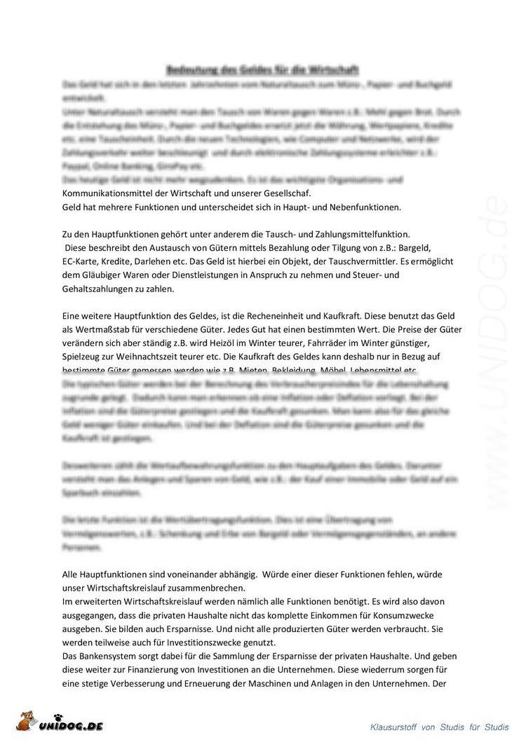 Abstract: Bedeutung des Geldes für die Wirtschaft |