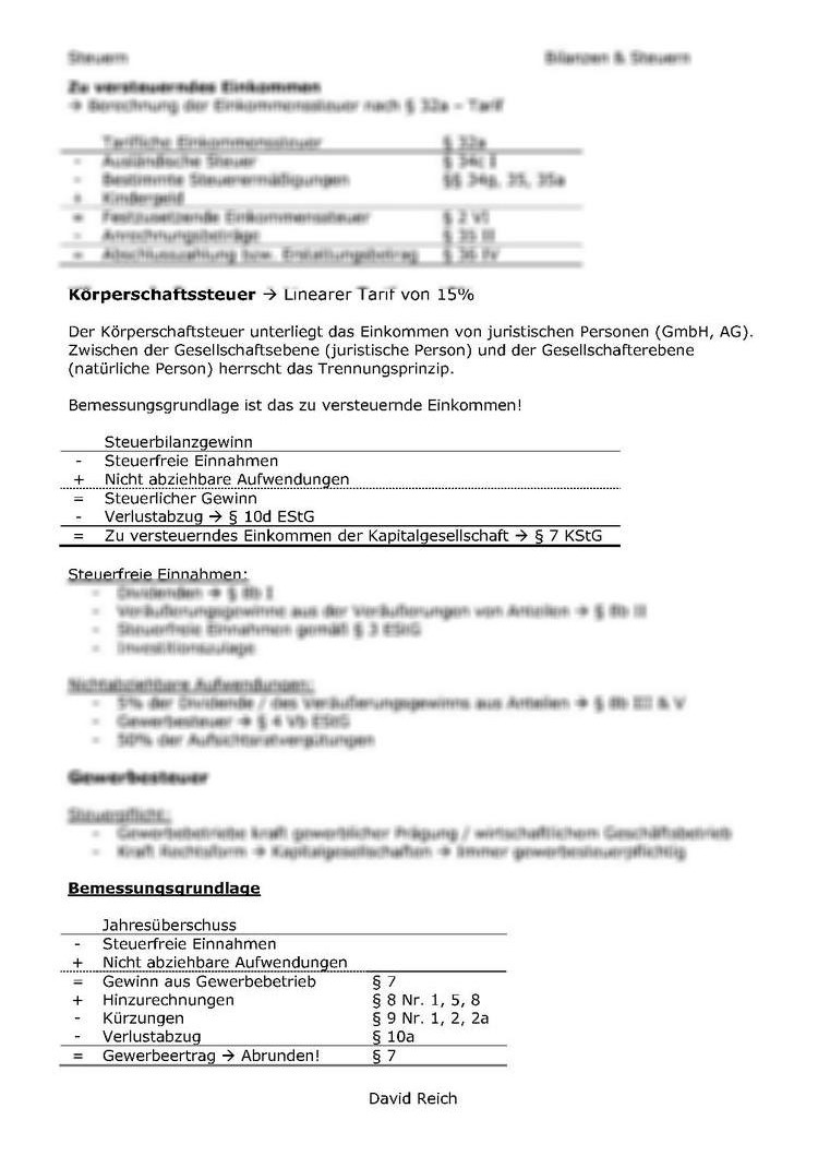 Klausurinhalte für die Steuerlehre! Viel Erfolg |