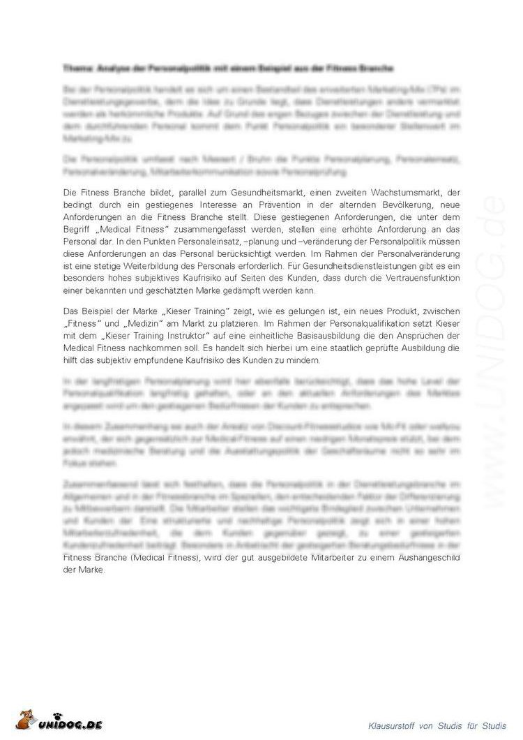Thema: Analyse der Adoption von Produktinovationen mit einem Beispiel aus der TV-Branche Inhalt: Einleitung: Analyse der Personalpolitik mit einem Beispiel aus der Fitness Branche Einleitung: Darstellung Marketing-Mix Einordnung Personalpolitik Ausarbeitung: Analyse der Personalpolitik am Beispiel einer Fitness-Marke Kritische Würdigung: Bedeutung der Personalpolitik innerhalb der Branche, Wirkung auf Marke und Kunden Quellen: Verschiedene Quellen, sind zum besseren Nachvollziehen oder der Beschaffung weiterer Infos auf Seite 2 angegeben 395 Wörter Benotung noch nicht vorhanden