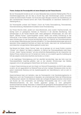 Abstract - Analyse der Personalpolitik mit einem Beispiel aus der Fitness Branche FOM Essen WS 2014 |