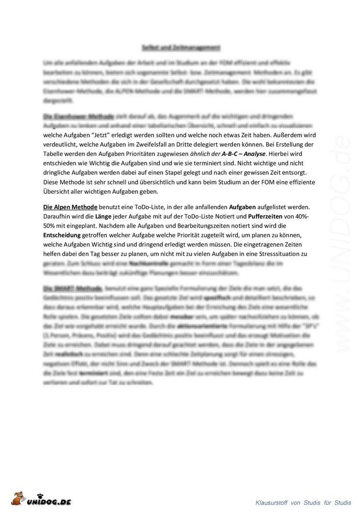 Abstract: Welche Methoden des Selbst- bzw. Zeitmanagements können im Rahmen des FOM Studiums ... |